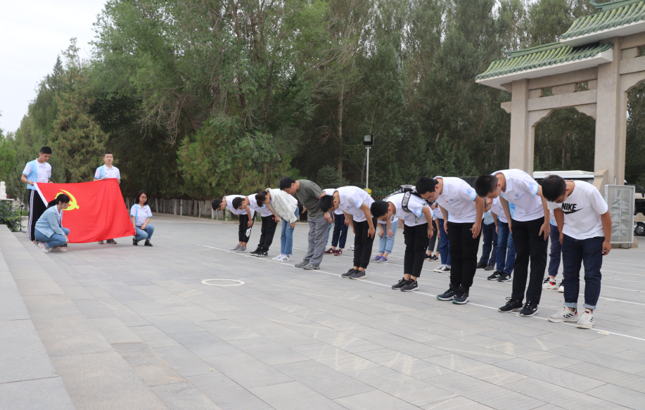 21日上午,实践队员一同前往东风革命烈士陵园参观学习。在茫茫的大漠深处,象征着国防科技战士扎根戈壁,志在航天的东风烈士陵园,长眠着500多名为祖国航天事业献出宝贵生命的革命先烈。东风浩荡,战鼓催征,东风革命烈士陵园,是新中国跻身世界航天大国奋斗历程的缩影,是基地艰苦奋斗光荣历史的见证,它不断激励后来者在科技兴国和科技强军中打头阵、当先锋。在院党委副书记王强的主持下,实践队员在各位烈士墓前肃穆追悼,向聂荣臻元帅和献身航天科技事业的英烈们行三鞠躬礼。触摸这段历史,实践队员们感慨道:我们来到东风革命烈士陵园,感悟第一代基地人“死在戈壁上,埋在青山头”的革命气概,为共和国航天事业“献青春、献终身、献子孙”的伟大壮举,心中倍受震撼。