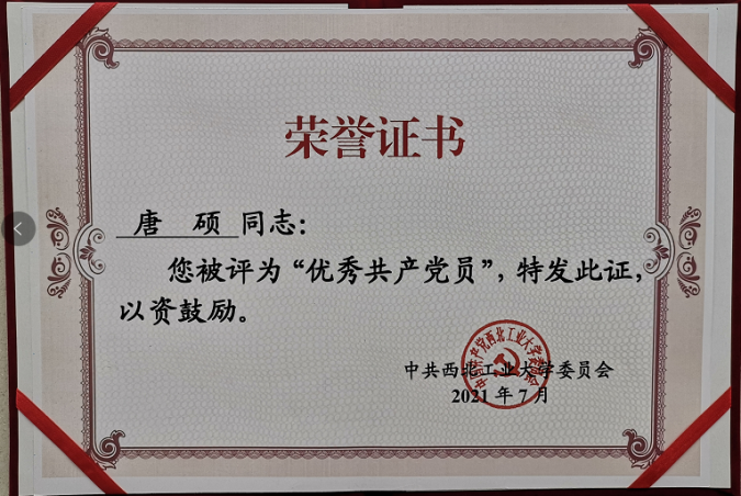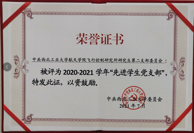 ,唐硕获优秀共产党员、李国骏获优秀党务工作者、飞行控制研究所研究生第二党支部获先进学生党支部、朱远和杨登峰获优秀学生共产党员等荣誉称号。