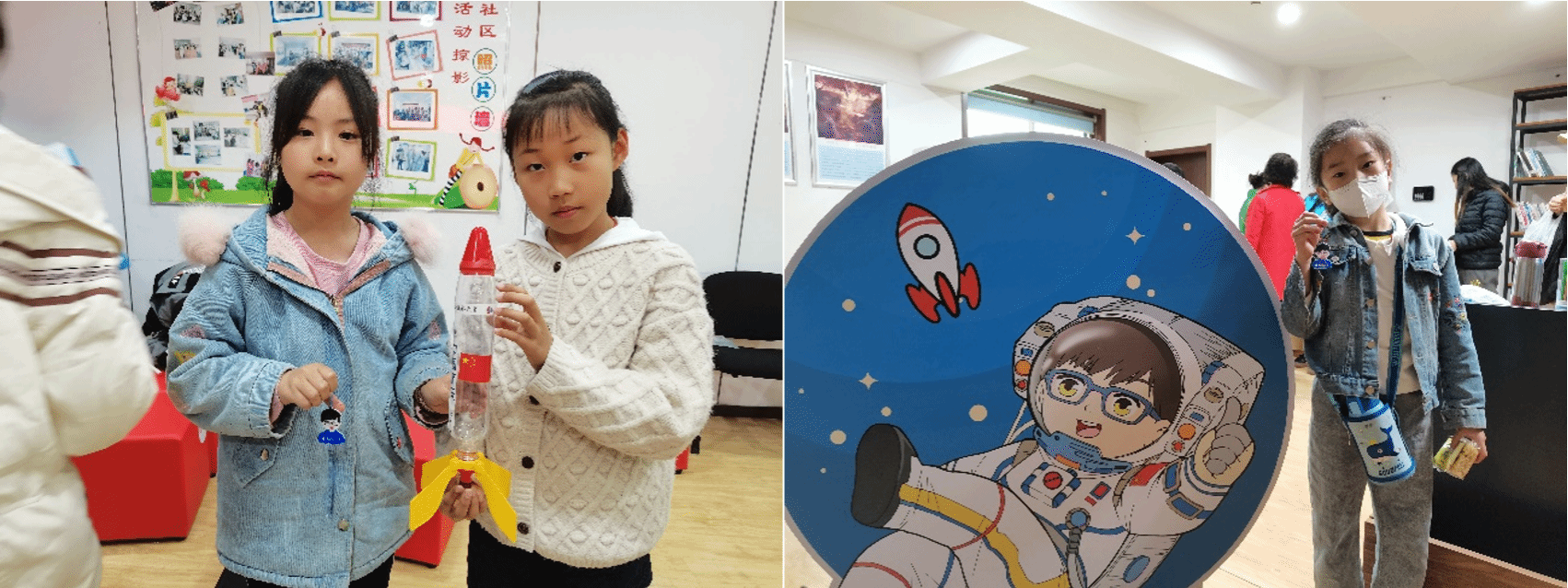 航天科普志愿者生动讲解了火箭飞行原理和宇航员太空飞行的相关知识,带领小朋友们探索奇妙的航天世界。之后,小朋友们在志愿者的带领下,亲自动手制作气压式喷水火箭,安装尾翼、贴好“中国航天”标志……一步一步终于做好了属于自己的小火箭!