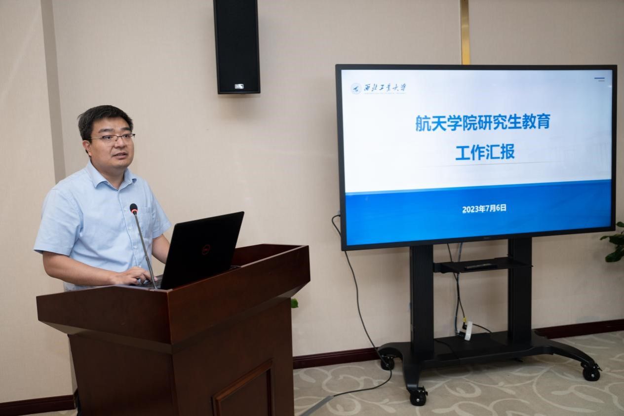 副院长宁昕围绕研究生招生、培养、学位全过程,汇报了研究生教育工作现状。他指出,目前航天科技“总师型”人才培养模式中科研实践、创新创业、综合素养训练有待加强,课程体系中本研衔接课程架构需要进一步完善,导师岗位胜任能力需进一步提升。针对以上问题,他提出多项工作举措和思路,要“坚持‘飞天班’培养试点改革,优化本研衔接课程体系”,要“重实践、厚训练、强氛围”,要“不断提升导师岗位胜任能力,严把学位论文质量关”等。
