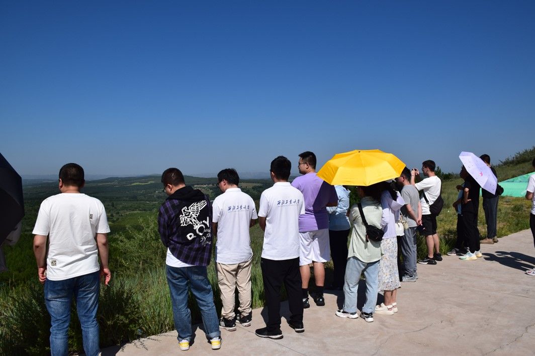 、县委组织部、县工信局、县委人才服务中心相关同志的陪同下首先参观了右玉县四五道岭生态园区。在到达四五道岭后,实践队员们看到了如今坐落在一片“绿色海洋”中的右玉县城。