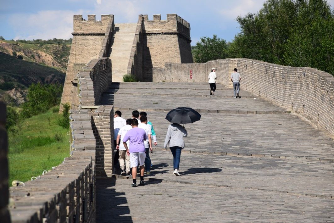 图为实践队员走在杀虎口城墙上。