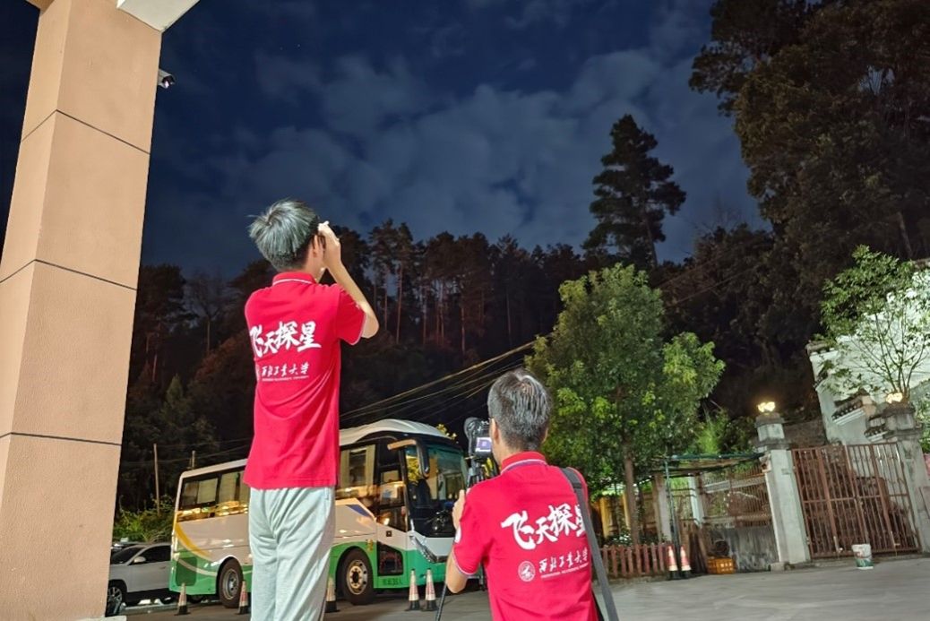 夜间,实践队员开展天文观测活动。队员们使用单筒光学天文望远镜、手持望远镜等观察天体星象,并进行深空摄影。