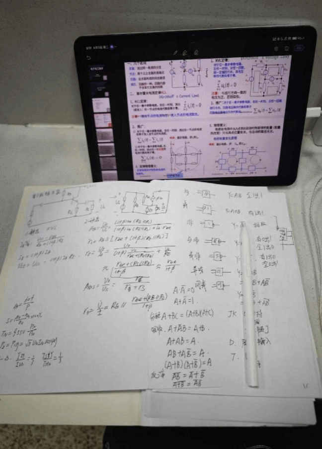 负责电工电子技术的小讲师王泽源,以基尔霍夫定律为切入点,从简单电路到复杂网孔电路逐步教学;面对电路推导、逻辑门原理等疑问,他专注答疑,或平板标关键、或纸笔演步骤,拆解知识、从基础讲起,耐心回应反复追问,直至同学明白,让难点逐个“破冰”。