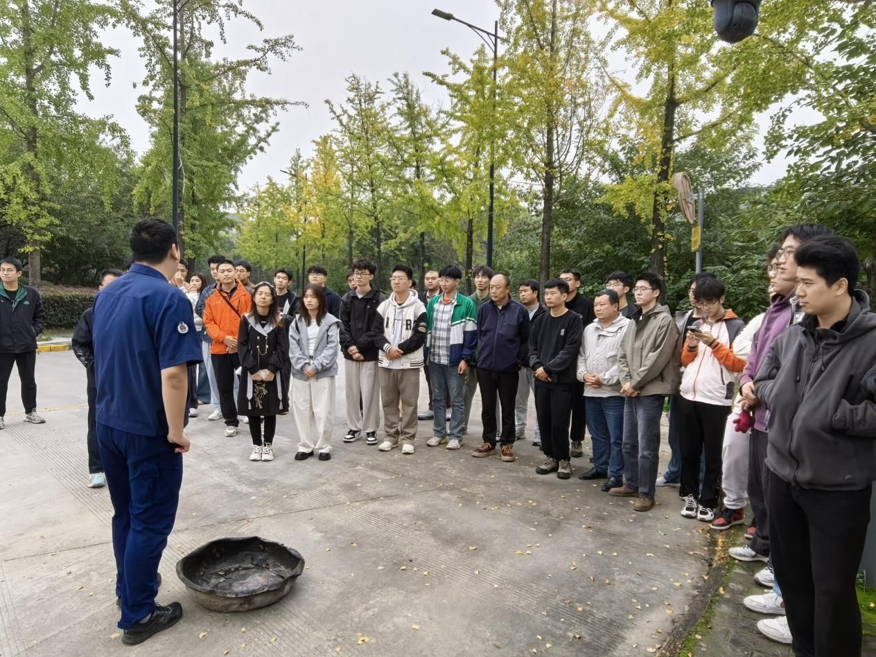 随后,许老师讲解了干粉灭火器的使用方法和注意事项,在他的指导下,师生们亲身体验了灭火器的使用,协作扑灭火源,现场互动氛围活跃。