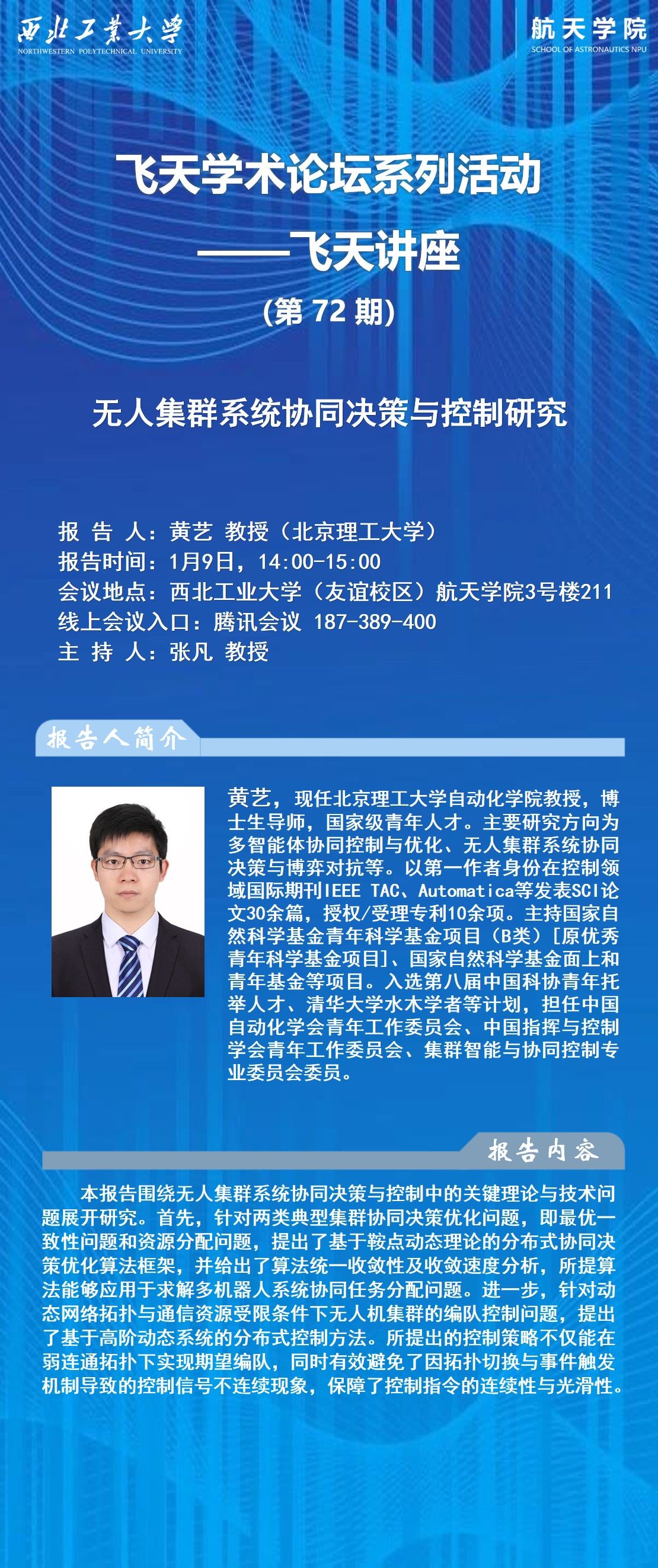 飞天学术论坛系列活动第72期:无人集群系统协同决策与控制研究
