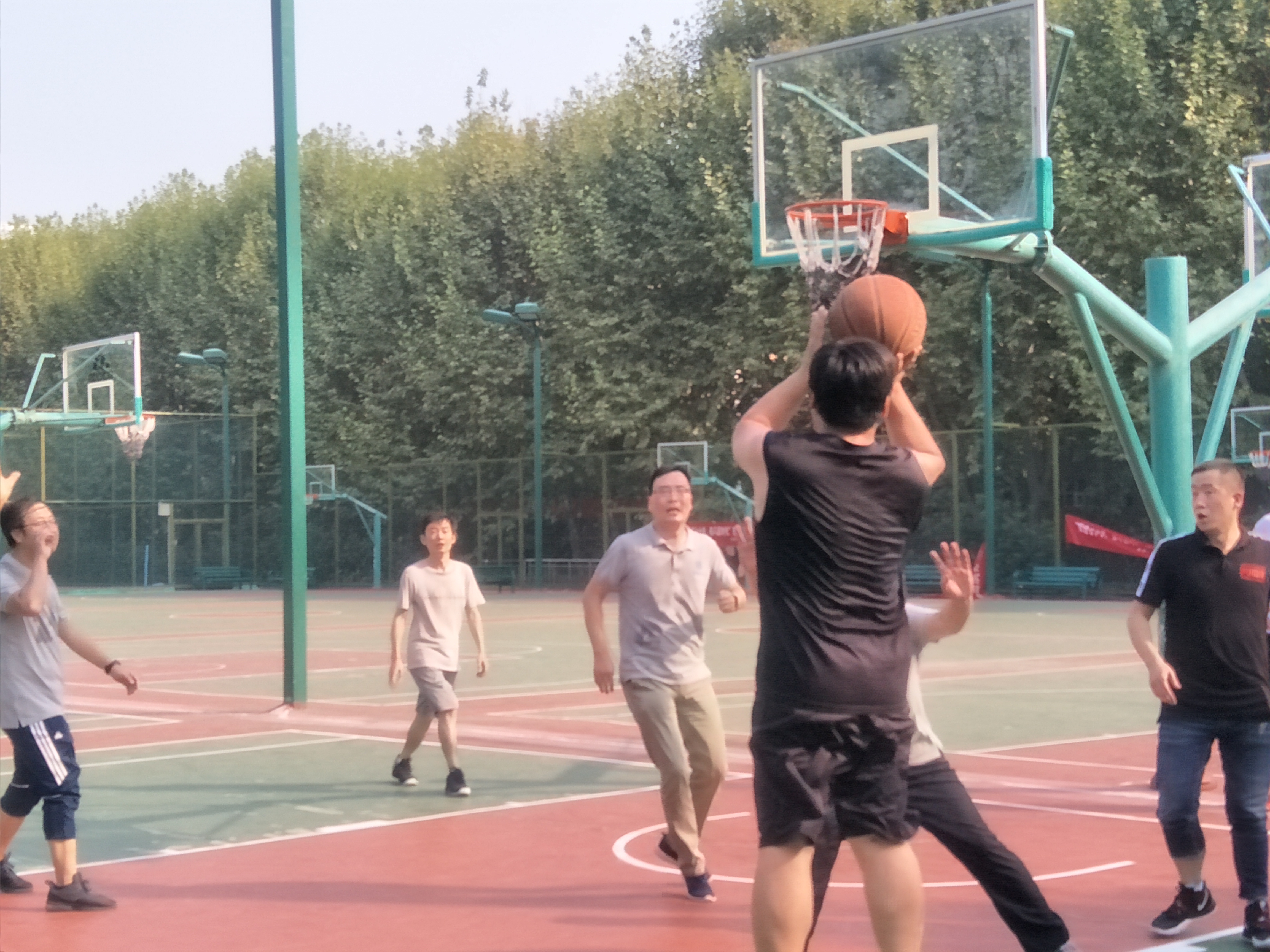 各研究所教职工积极参加本次篮球赛,组织了四支篮球队伍进行激烈的比赛。