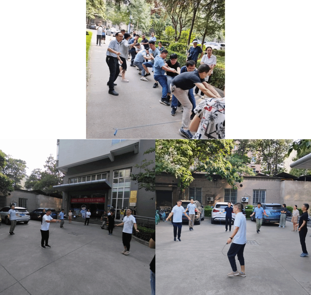 四号楼楼下拉开了帷幕,共有55名选手报名参加。活动设有拔河、跳绳(男女)、踢毽子(男女)5个项目。活动秉承着公平、公正、公开的原则热闹而又有序地进行着。活动现场的气氛十分的活跃,参加选手们都以饱满的热情和高度的积极性,全身心地投入到此次活动中。观看活动的老师们不时为参加活动的选手们欢呼鼓劲,各位选手在活动场上更是展开激烈的争夺,每个人都积极进取、奋力拼搏。
