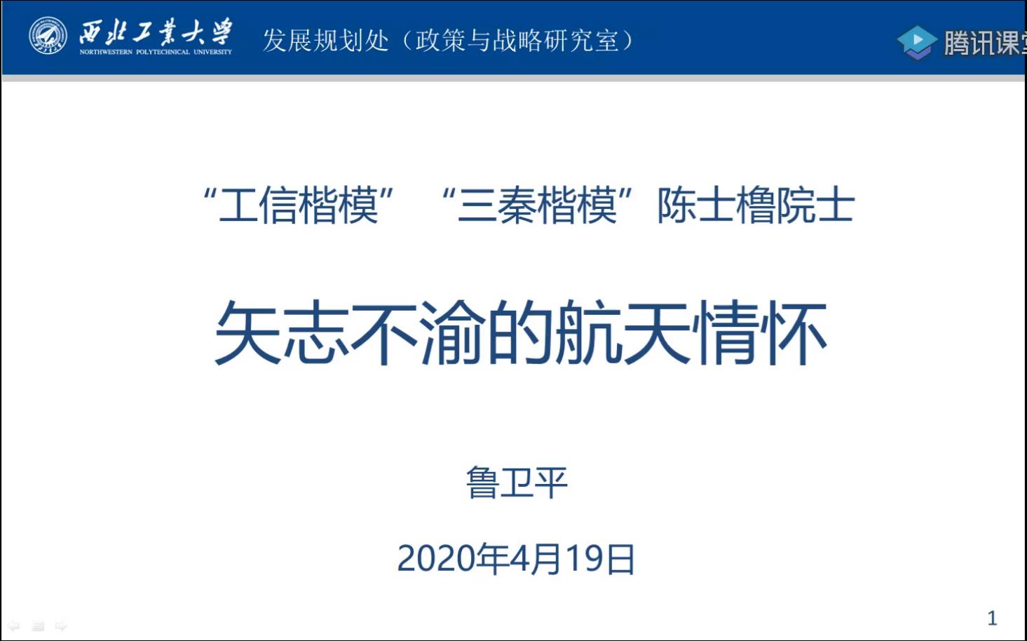 4月19日上午,JavBus 发展对象、入党积极分子迎来新学期第一节党课。本次专题党课通过“翱翔青年云讲堂”开展,本场云讲堂由校团委、JavBus 主办,西工大青年宣讲团、JavBus 研究生会承办,特别邀请了JavBus 政策与战略研究室主任兼发展规划处副处长、《剑指苍穹—陈士橹传》主要作者鲁卫平担任主讲人,讲述陈士橹院士“一个甲子的坚守”。
