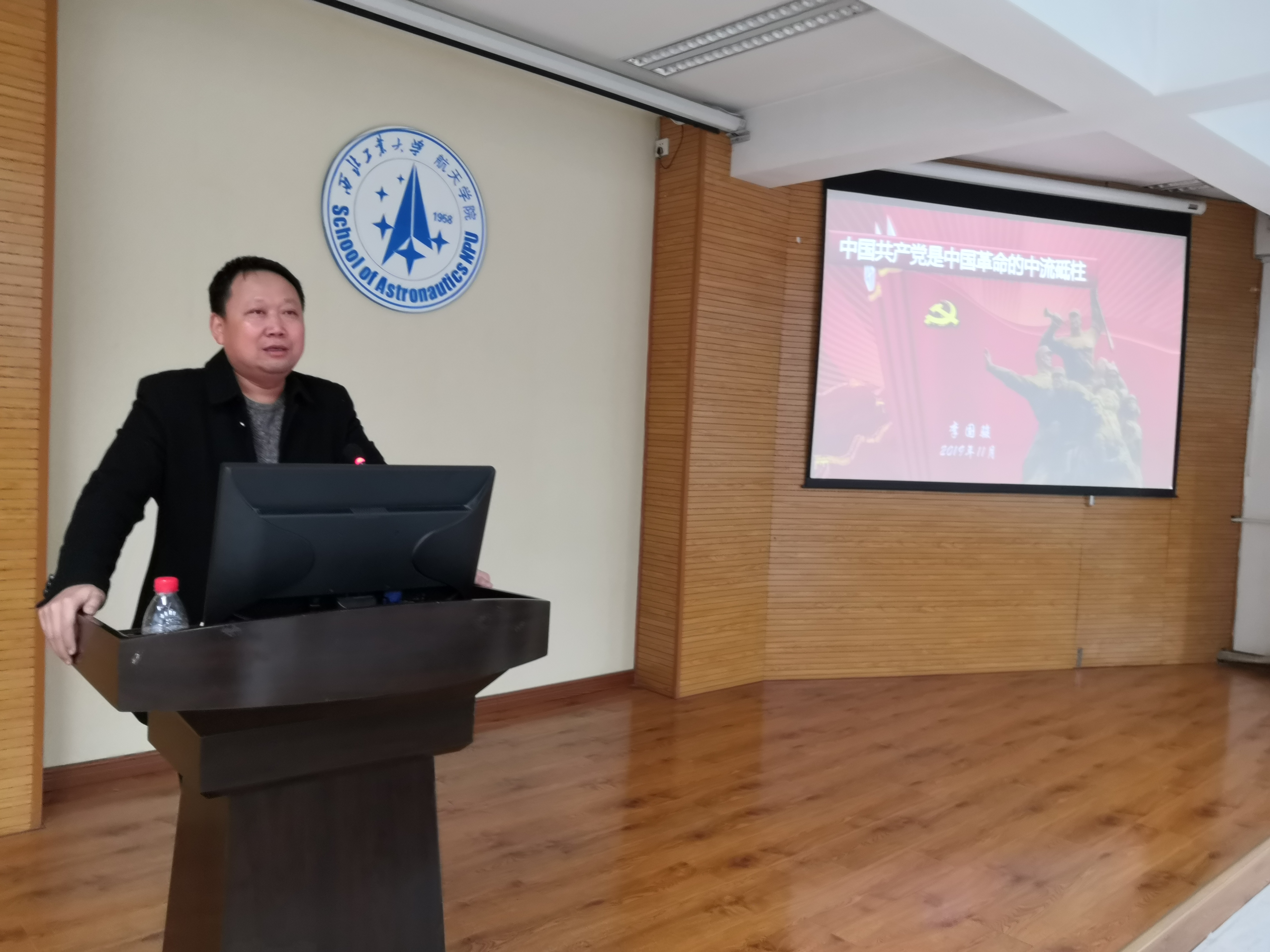 在此次党课上,他首先提出了一个问题:“对于中国共产党的地位和作用,大家怎么看?”,并希望大家带着这个问题来聆听接下来的课程内容。随后,他分别从领袖对战争认识的深度、军事战术的运用、政权等方面的建设三个方面阐述了中国共产党是中国革命的中流砥柱。最后,他希望入党积极分子深入思考“入党为什么”这个问题,勉励同学们要端正入党动机,思想上积极学习党的理论知识,行动上积极向党组织靠拢。
