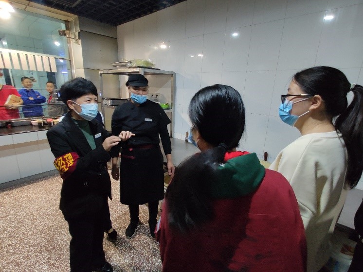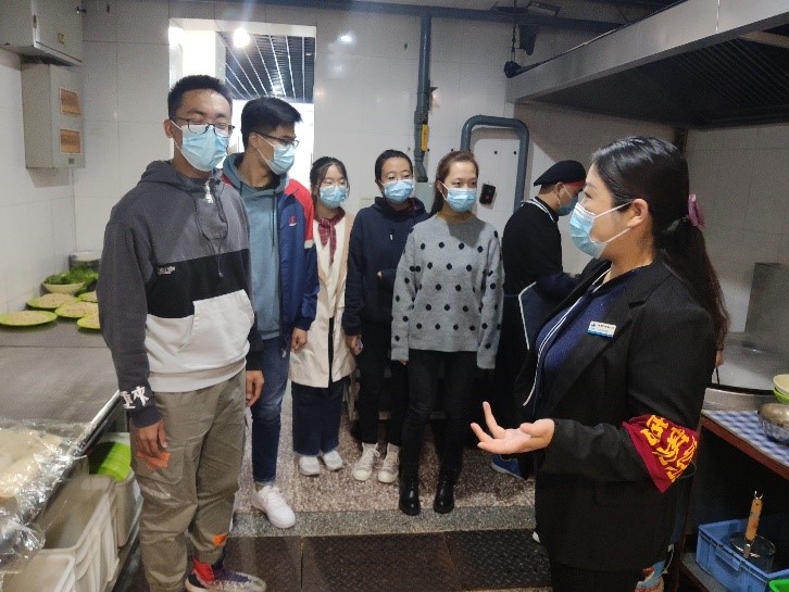 面食窗口的参观令大家感触颇深:“每一份扯面为三两,四份扯面为一碗,每天卖出一百多碗并且要保证不能有剩余的原材料”是主厨师傅心中的一杆天秤。师傅们也在日常的工作中,将节俭融入到工作的各种微小环节中,践行着节约的美德。调研结束后,同学们点了自己喜欢的饭菜,进行了此次团日活动的最后一次光盘打卡!