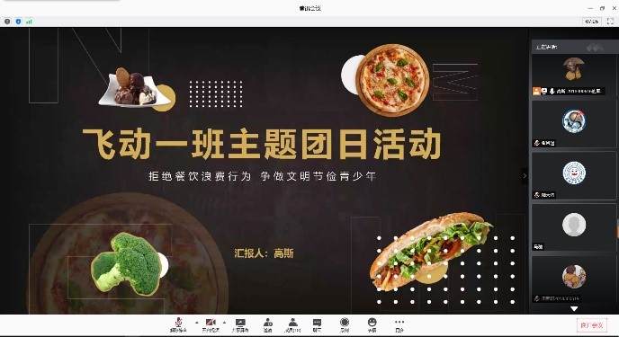 为了让同学们更加深刻的理解光盘行动的意义,践行活动主题,打卡活动结束后,10月8日晚,航天02031801班举行了线上会议。会上,同学们分享了关于光盘打卡活动的感悟与总结,并对身边的浪费行为提出好的建议。同时,同学们集体观看了倡导珍惜粮食的公益宣传片,一帧帧爱惜粮食的画面映入眼帘,告知我们每一粒米饭的来之不易,成堆的餐后余食,触动心尖。每个人一举一动都影响着周围环境,光盘打卡活动虽然告一段落,但学生们节俭的征途正扬帆起航。