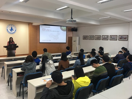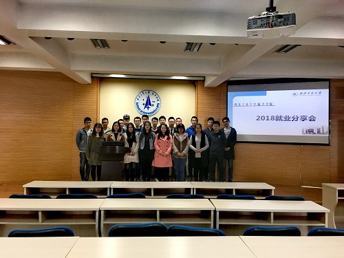 签约航空工业集团光电所的张孝南同学首先进行了分享,他主要从了解就业意向、明确就业目标、剖析自身优势和巧用身边资源等四个方面细致又全面的讲解了他的求职之路。接下来是签约中航国际航空发展有限公司的吉申莘同学分享就业经验,他强调找工作一定要有充分的准备,对自己要有非常清晰的认识,了解自己的优势、弱点、机会和威胁。在选择单位时要有针对性,切忌盲目海投。