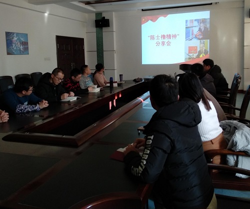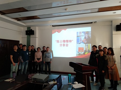 3号楼5楼会议室召开了“陈士橹精神”分享会,18名在校党员悉数出席,会议由支部书记许若男同志主持。