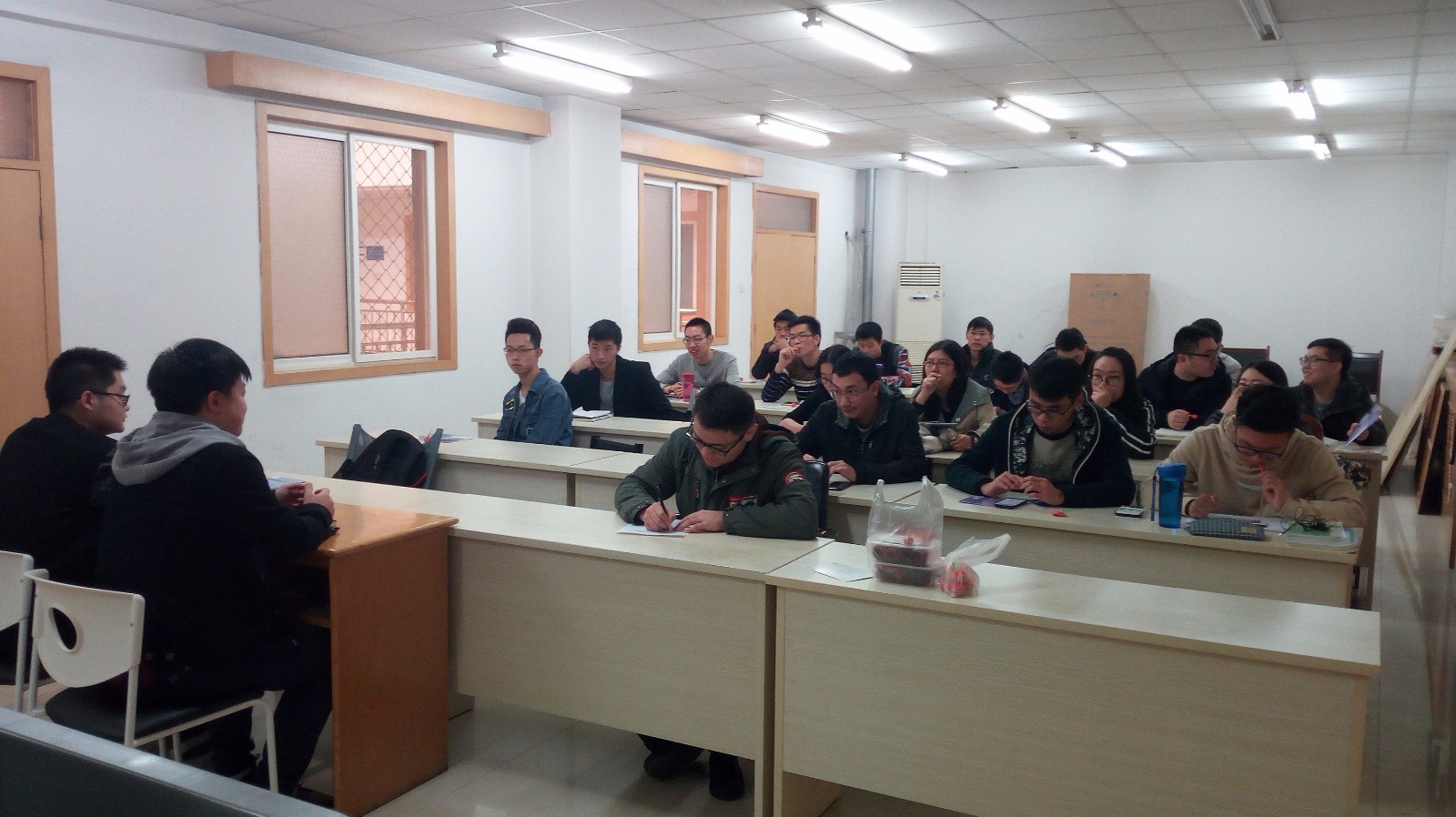 六号楼四楼研究生教室成功举行。本次分享会邀请了15级航空宇航推进理论与技术专业的硕士赵晓帅和陈艾鹏分享研究生阶段学业、生活等相关的经验。其中,赵晓帅在2016-2017学年学业测评成绩优异,获得一等学业奖学金;陈艾鹏独立完成了某大型固发推进剂装药结构完整性分析。
