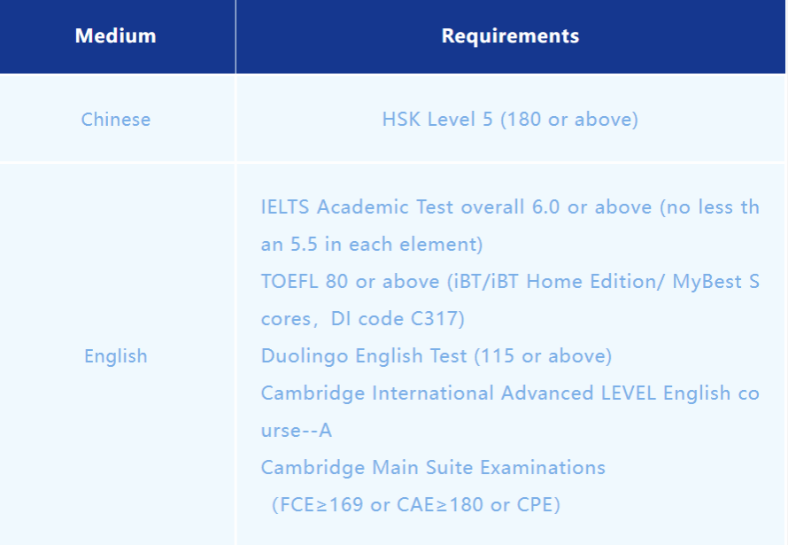 Applicants should have Chinese or English language proficiency that meets the requirement.