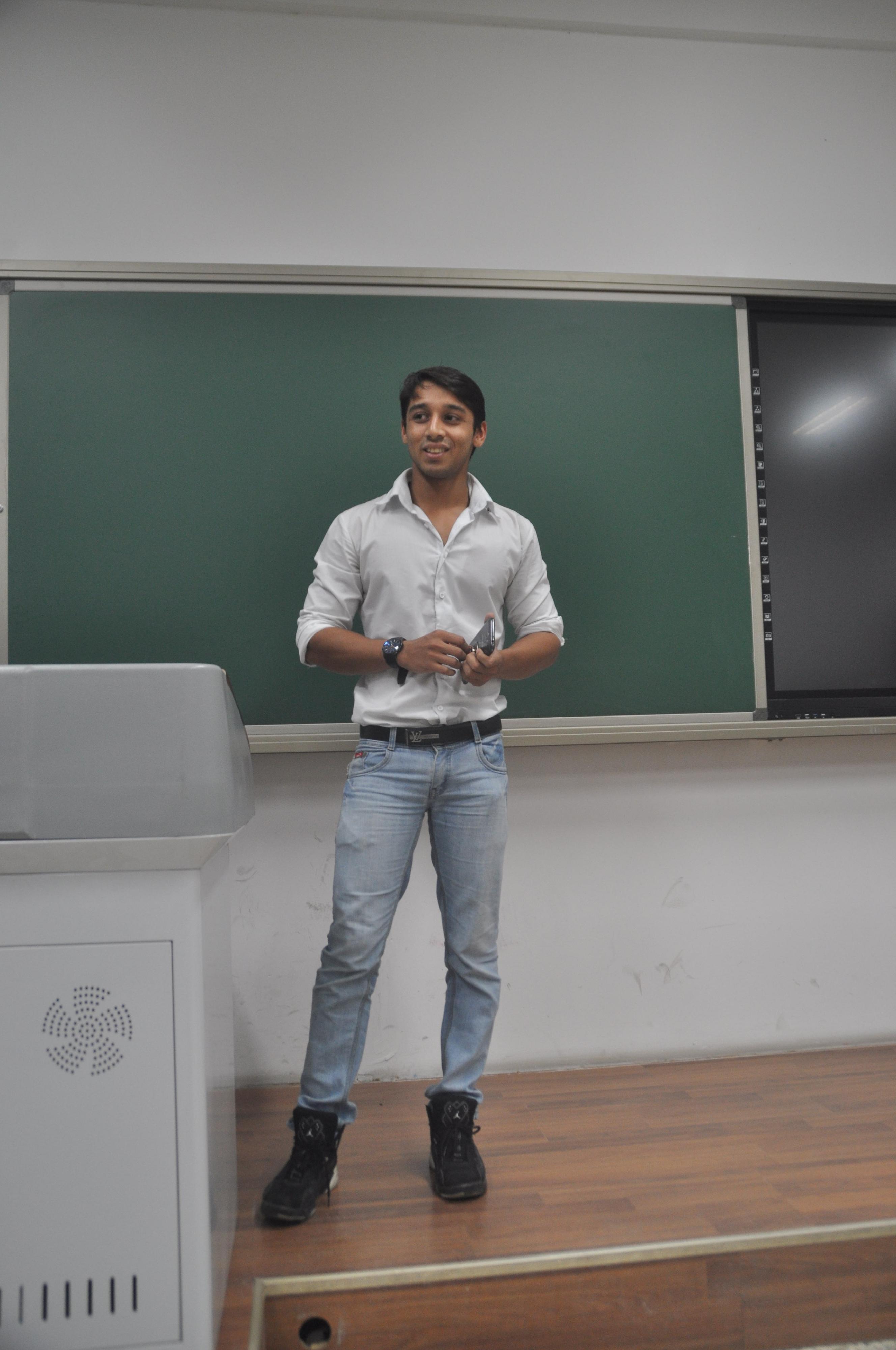 The next part of the traditional culture is to explain the Mid-Autumn Festival to foreign students, including origin, custom and history. Indian student Vinay Yadav introduced the religion, culture and tradition in India by video and pictures, which arouse their interest.